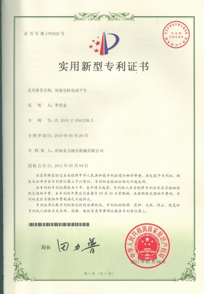 实用新型专利证书